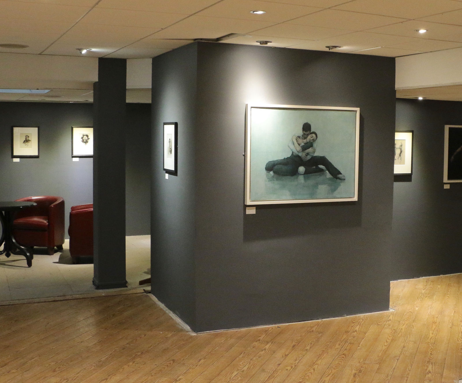Also included is a room of paintings and drawings from my Ballet Cymru series (pictured), including one the earliest canvases, Nation of Two (Andrea Battaggia and Allegra Vianello), depicting a moment from a rehearsal of Serenestial, the company’s 2016 National Eisteddfod production. The painting is titled after a line from Mother Night by Kurt Vonnegut, whose portrait hangs nearby.